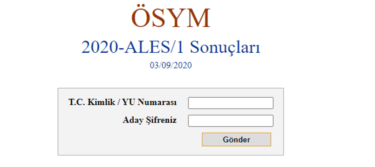 Ösym tarafından yapılan açıklamaya göre ales sınavı 7 eylül tarihinde sonuc.ösym.gov.tr adresi üzerinden adaylara duyurulacaktır. Aradığınız kelime için bir içeriğimiz bulunmamaktadır. Ales 2020 sonuçları 3 eylül 2020 itibariyle açıklandı. Ales sonuçları bugün açıklandı sınav sonuçları ösym tarafından yayınlanır yayınlanmaz haber sayfamıza olacaktır. Ales sonuçları ne zaman açıklanacak?